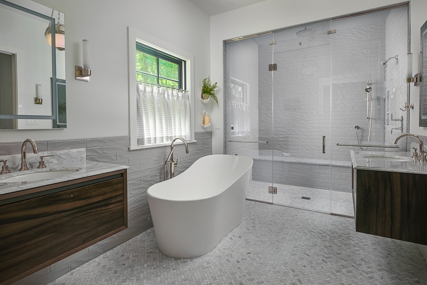 J.R. Maxwell Builders used the foundation of a smaller preexisting home and expanded and built a stunning larger custom home for our clients including a three-car detached garage and upstairs in-law suite. Modern, elegant construction, windows and features and custom millwork in the kitchen and living rooms complete the build. The millwork is from Mink Run Millwork, a division of J.R. Maxwell Builders.