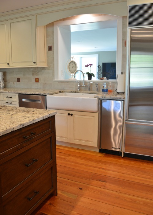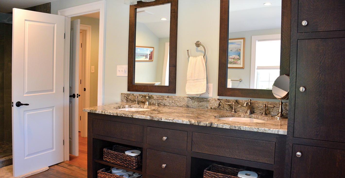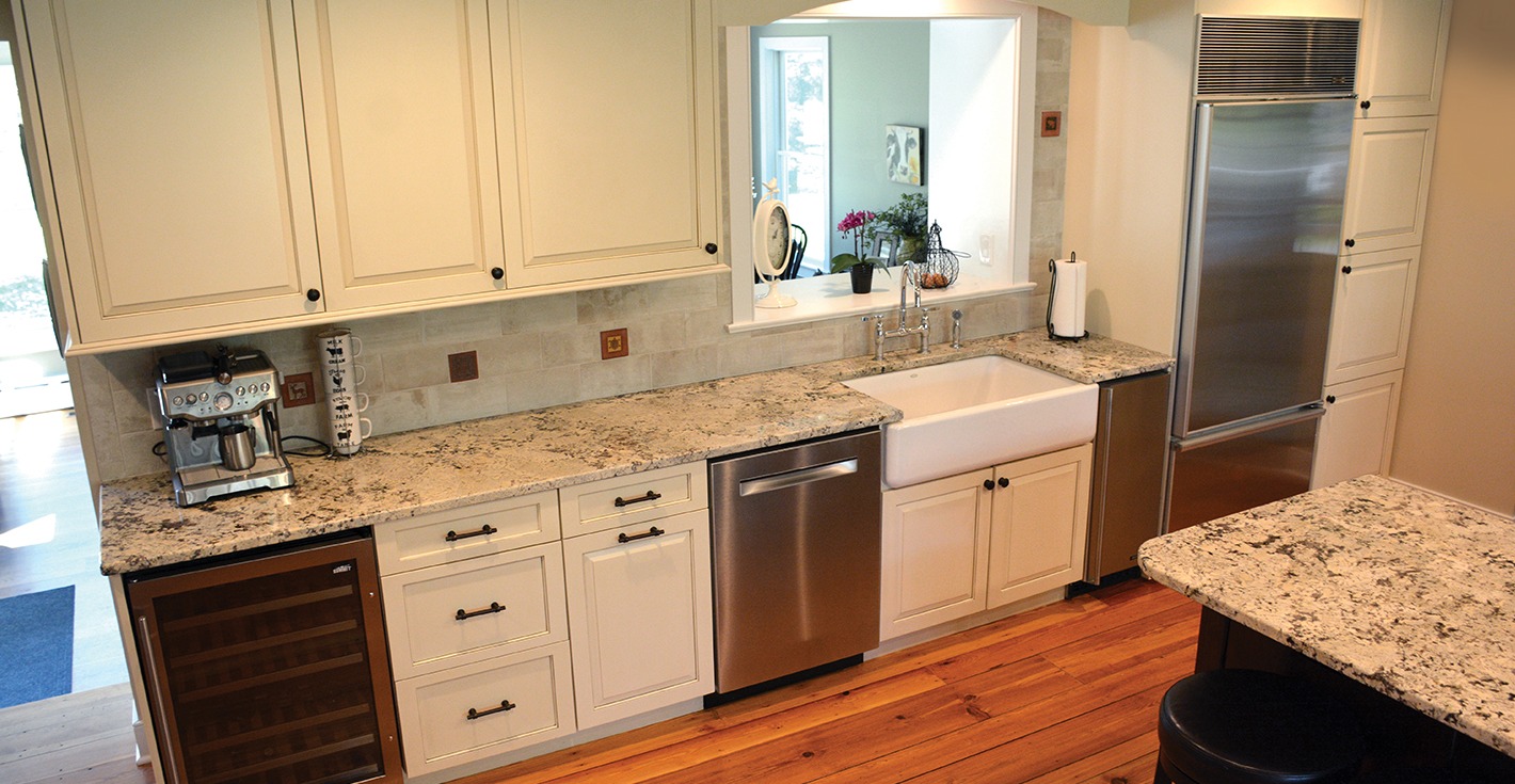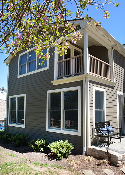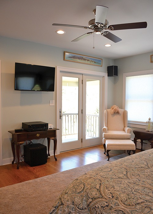 The team at J.R. Maxwell Builders re-built and expanded on an original addition to this historical home in Doylestown, which included a living room, expanded kitchen, and a new master suite featuring a larger bedroom and master bath. The kitchen features custom cabinetry by Mink Run Millwork, including a spacious accent-colored island. A new mudroom and powder room adjacent to the living room complete the downstairs.